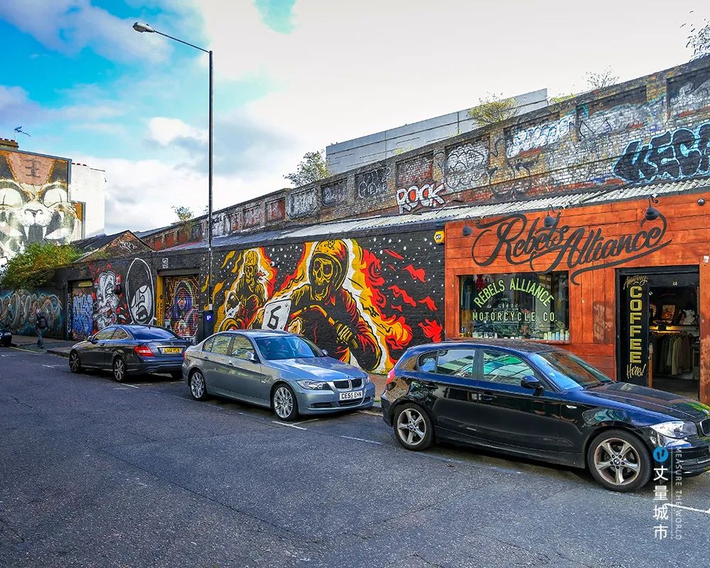 這里也是倫敦最早實(shí)行涂鴉合法化的區(qū)域,來(lái)自全球的涂鴉大師在此創(chuàng)作,吸引到年輕人來(lái)此打卡。有了人流量,沿街的商鋪逐漸復(fù)蘇。