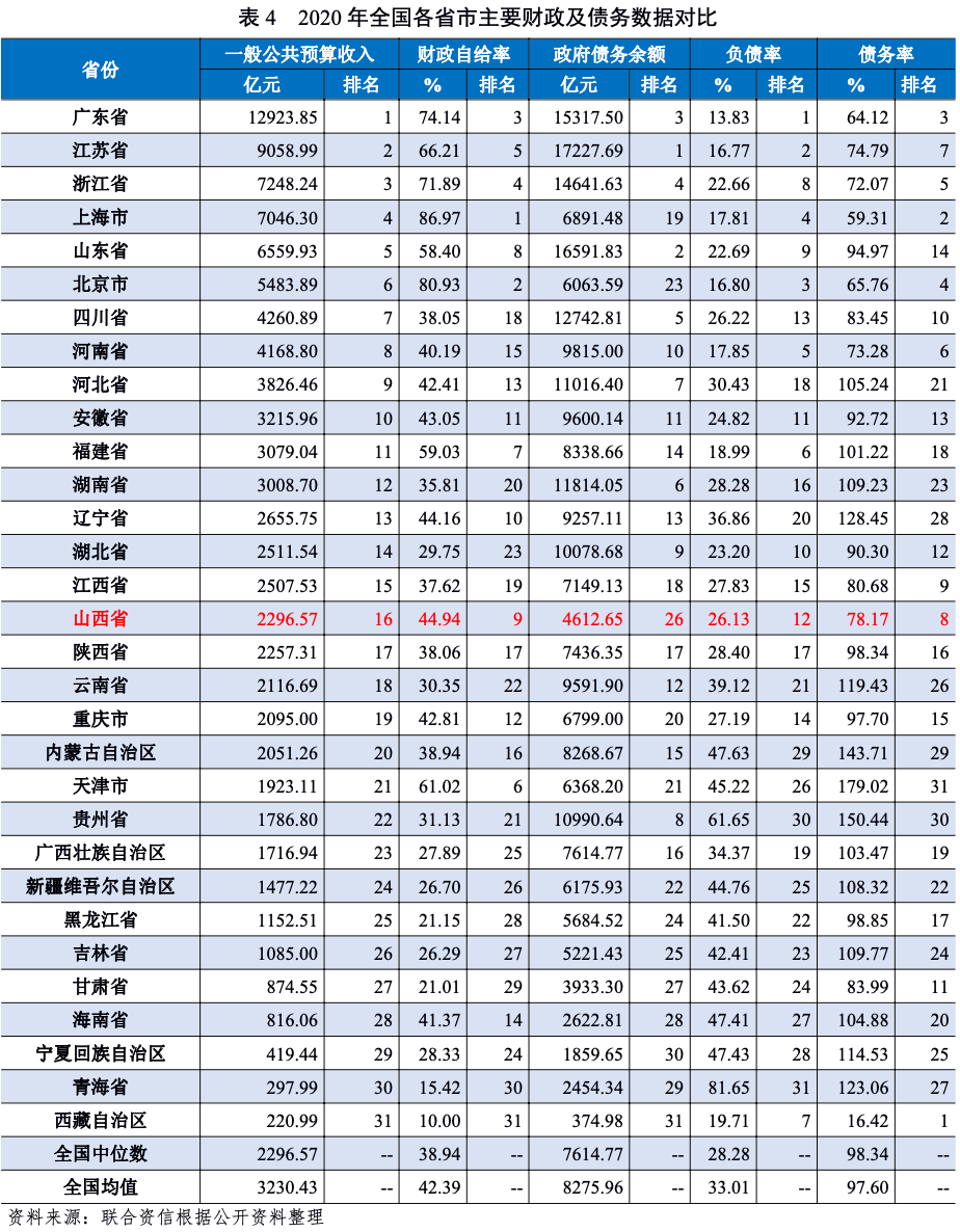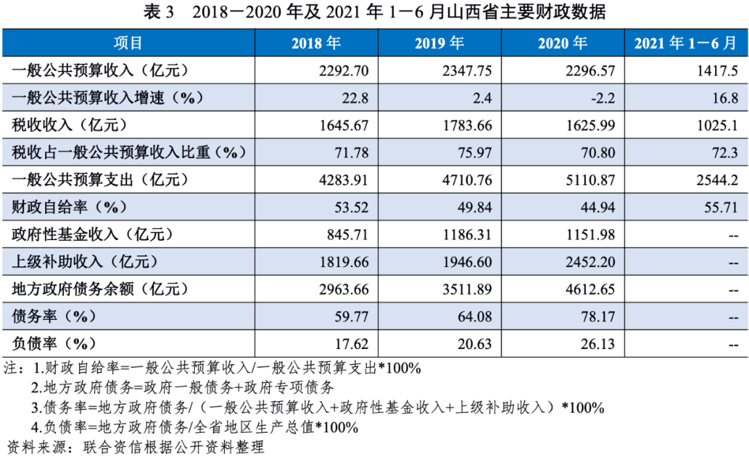 2.山西省財(cái)政實(shí)力及債務(wù)情況