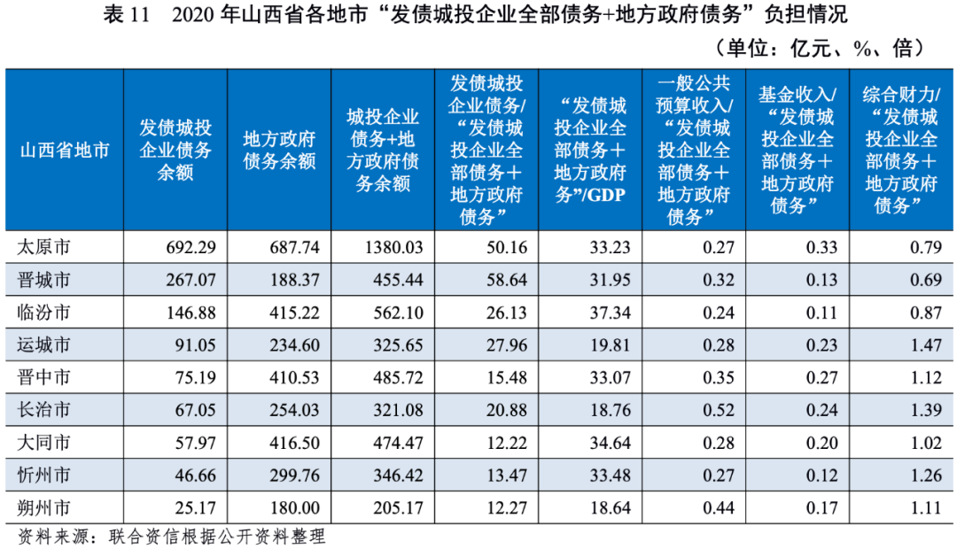 3.山西省各地市財(cái)政收入對(duì)政府及發(fā)債城投企業(yè)債務(wù)的支持保障能力[2]
